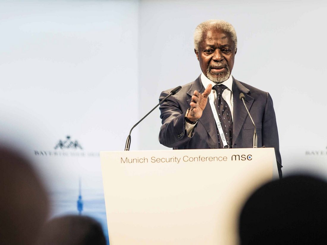 Auf der Münchner Sicherheitskonferenz 2016 diskutierten unter anderem die EU-Außenbeauftragte Federica Mogherini, der ukrainische Präsident Petro Poroschenko und der ehemalige UN-Generalsekretär Kofi Annan.